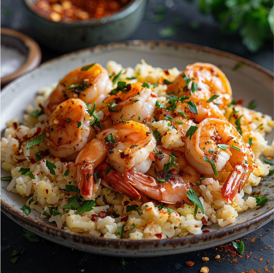 Spicy Garlic Shrimp with Cheesy Cauliflower Rice